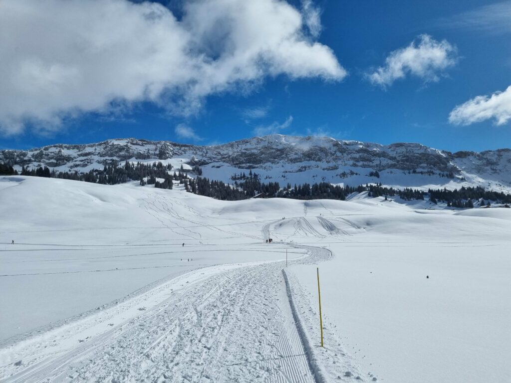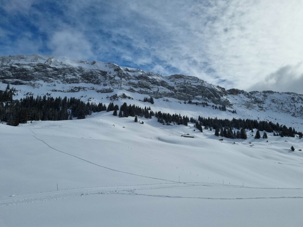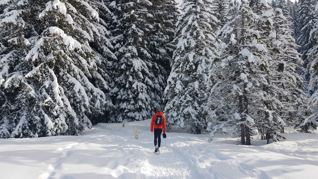 Ce qui me plaît surtout, c’est l’espace. Le plateau est immense, dégagé, et même les week-ends où il y a du monde, tu arrives toujours à trouver ton coin tranquille. C’est moins blindé que le Semnoz (retrouve mes itinéraires de raquettes au Semnoz )car beaucoup plus espacé et plus loin aussi d’Annecy. Tu croises des pas mal de fondeurs, d’autres raquetteurs et oui certains dimanches ensoleillés pour les vacances il vaut mieux arriver tôt pour pouvoir se garer mais dans l’ensemble ça reste cool.