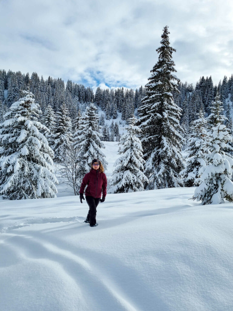 La boucle classique du Semnoz, au niveau du plateau, celle que tout le monde fait au moins une fois. C’est franchement magnifique, de loin ma préférée où j’embarque les potes, la famille ou juste Rhéa quand j’ai envie de faire une petite balade sympa. Franchement…la plupart du temps tu n’as pas besoin de raquettes sauf si tu veux faire un peu de hors piste ou si il a neigé la veille, mais souvent c’est damé ou tassé par le passage donc pas trop de stress là-dessus !