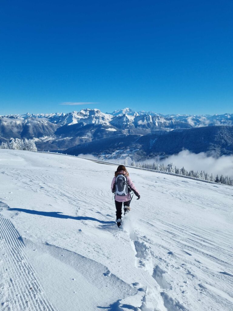 Dans cet article, je te détaille mes itinéraires préférés pour les raquettes proches d’Annecy, tous accessibles à max 1h de route (sans les bouchons, sans le verglas…merci de ne pas me faire un procès y’a pas marqué Waze non plus sur mon front). Du Semnoz à 30 minutes, au Grand-Bornand et La Clusaz à 1h, en passant par Manigod et les Glières, tu vas avoir le choix. Avec les infos pratiques, les distances, le dénivelé, et surtout mes retours terrain pour que tu saches exactement où aller selon ce que tu cherches.